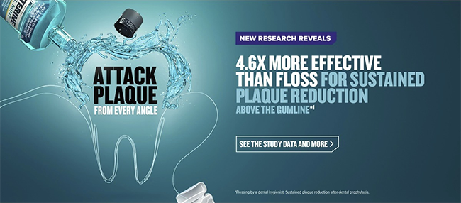 Antiseptic rinse proved 4.6 times more effective than floss [i]*